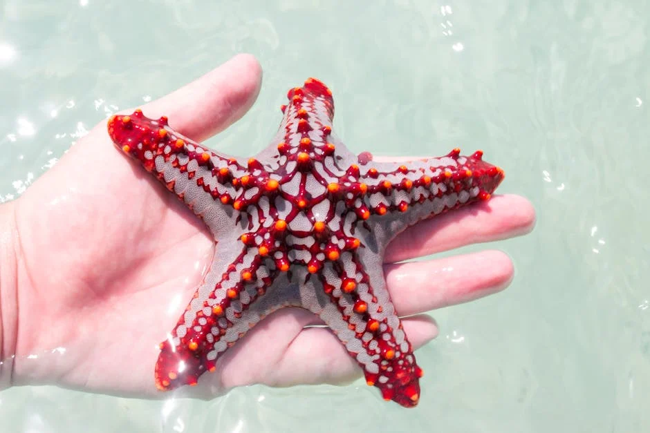 Starfish, also known as sea stars, are echinoderms belonging to the class Asteroidea. Their most distinctive feature is typically having five radially arranged arms (though some species have more), giving them a star-like shape. Starfish inhabit the seabed in oceans worldwide, from intertidal zones to the deep sea. They are usually carnivorous or omnivorous, feeding on bivalves, worms, sea urchins, and other bottom-dwelling organisms. Starfish possess remarkable regenerative abilities, capable of regrowing an entire body from a detached arm.